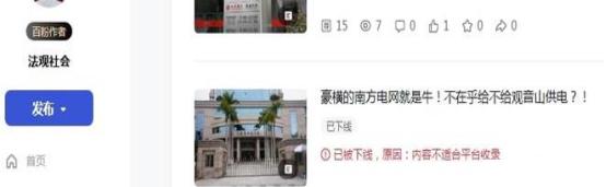 网易号“法询独家”发布的《终于知道南方电网为什么不给观音山供电了!》在展现803次后没有通知,直接下线!
