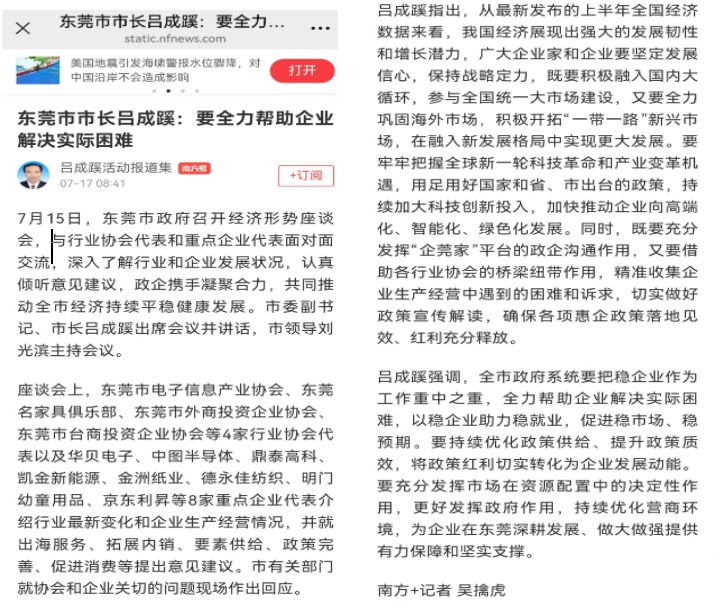 除了报道吕市长不少动作外,南方+也报道了不少东莞市的诸多行动,可谓是行动计划喜人啊!
