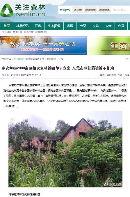 这些情景,可以参考媒体报道的:《国家4A级森林公园竟藏22栋私人别墅》、《20余年间 广东观音山国家森林公园约2000亩生态林被毁 如何破解?》、《4A景区被”毁容” 观音山森林公园遭毁林破坏生态》、《植树节前夕观音山再现毁林乱象,东莞生态保护环境亟待重塑!》、《广东观音山国家森林公园毁林种果为何屡禁不止?》、《从“两高”发布生态环保检察公益诉讼看观音山千亩毁林能否被查》、《观音山国家森林公园二十年被毁林近二千余亩 林长是何表态》、《国家多部门合力守护林草资源,观音山原始次森林被破坏该有人管了》、《观音山国家森林公园毁林、修编真相揭秘》、《盘踞广东观音山国家森林公园违建缘何成“不倒翁”》、《从东莞观音山违建别墅看当地营商环境的现实与隐忧》、《广东深化林长制改革,东莞观音山毁林违建问题能否迎来“终结篇”?》、《评:东莞观音山森林公园毁林现象屡禁不止,谁之责?》、《东莞构建全方位控违治违体系 观音山大量违建无人理》......