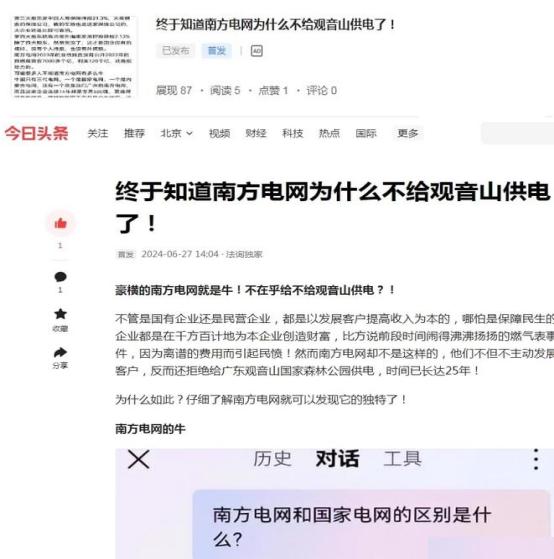 网易还有贴文:《豪横南方电网就是牛!不在乎给不给观音山供电?!》